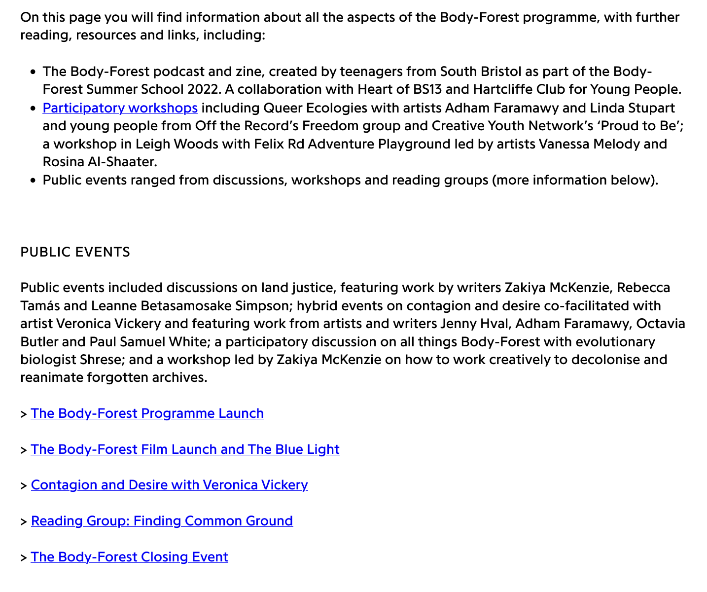 among others, the Body-Forest included participatory workshops,